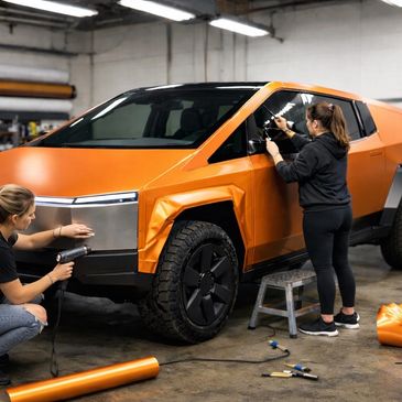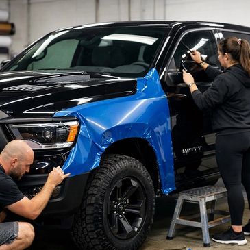 Services include full and partial car wraps, color change wraps, commercial branding wraps, and custom graphics. Window tinting is also included to enhance privacy, reduce heat, and improve the overall aesthetic of the vehicle.